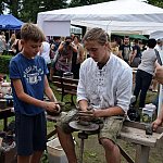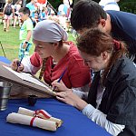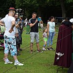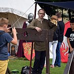 Pokaz ubierania w zbroję, prezentacja dawnych zabaw i rywalizacji, namioty z wystawką strojów dawnych, stanowisko kata, możliwość obejrzenia z bliska broni i rynsztunku oraz zapoznania się z kaligrafią - wszystko to przyciągnęło sporo rodzin do Parku Solidarności.