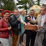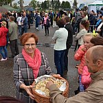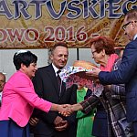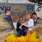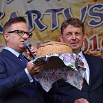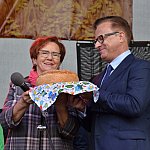 Mimo kapryśnej aury wyjątkowo radośnie było dziś w Przodkowie, gdzie odbyły się powiatowe dożynki. Dożynkowy bochen od starostów dożynek odebrali gospodarze uroczystości starosta Janina Kwiecień i wójt Przodkowa Andrzej Wyrzykowski.
