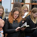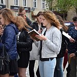 Tegoroczne Targi Nauki i Kultury, w które włączają się uczniowie szkół ponadgimnazjalnych powiatu kartuskiego, pozwoliły zanurzyć się w świat literatury. Najpierw na Rynku odczytali fragment "Pana Tadeusza", a po tym w rytmie poloneza przeszli do Parku Solidarności. Tam już czekały książkowe postaci, wystawy, gry i inne atrakcje.