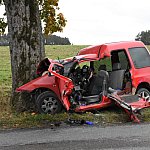 Puzdrowo. Osobówka uderzyła w drzewo. Jedna osoba ranna