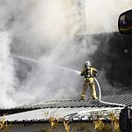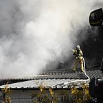 Mam nadzieję że ten człowiek w „cywilnym ubraniu” walcząc ramię w ramię ze strażakami na dachu nie doznał żadnych urazów. Bardzo nieodpowiedzialne zachowanie tego człowieka oraz strażaków że dopuścili do tego.