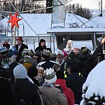 Po mszy w kościele pw. św. Jana Chrzciciela ulicami Sierakowic ruszył uroczysty Orszak Trzech Króli w kierunku Ołtarza Papieskiego. Tam odbyło się wspólne kolędowanie.