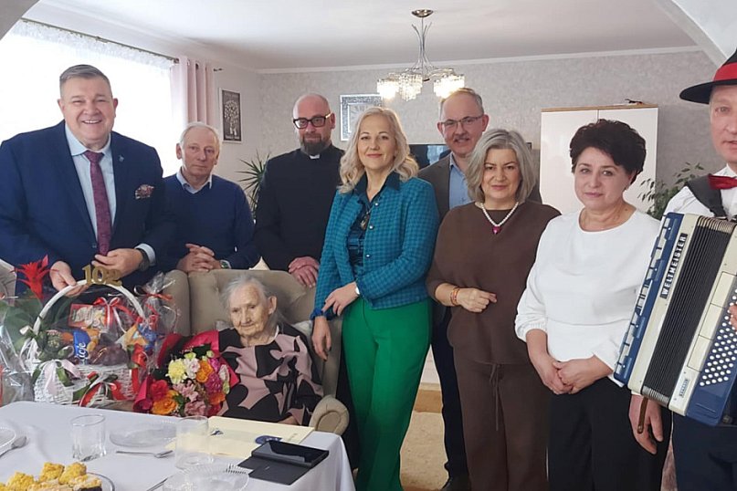 Z okazji 102. urodzin panią Stefanię z gratulacjami i najlepszymi życzeniami odwiedzili: Mieczysław Grzegorz Gołuński, Burmistrz Kartuz wraz z zastępcą Sylwia Biankowską, a także radna Lidia Plichta, sołtys wsi Wiesław Konkol oraz proboszcz parafii w Sianowie Mateusz Draszanowski.