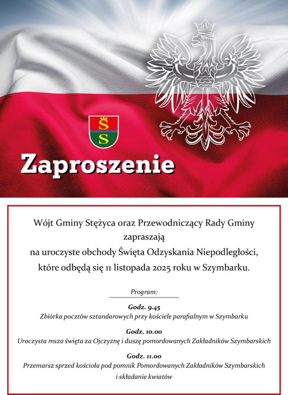 W Szymbarku uroczystości rozpoczną się o godz. 9.45 zbiórką pocztów sztandarowych przy miejscowym kościele. O godz. 10.00 odprawiona zostanie msza św. za Ojczyznę i dusze pomordowanych Zakładników Szymbarskich. O 11.00 odbędzie się przemarsz sprzed kościoła pod pomnik Pomordowanych Zakładników Szymbarskich i składanie kwiatów.