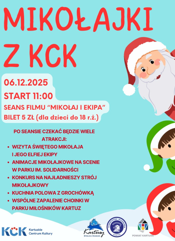 W sobotę 6 grudnia miasto wypełni się świąteczną atmosferą za sprawą "Mikołajek z KCK". Wydarzenie przygotowało Kartuskie Centrum Kultury z myślą o najmłodszych i ich opiekunach.