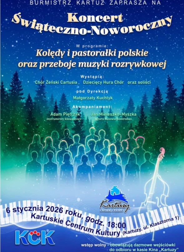 W Kartuskim Centrum Kultury odbędzie się Koncert Świąteczno-Noworoczny. Będzie piękną okazją do wspólnego kolędowania i celebrowania początku nowego roku w wyjątkowej, muzycznej atmosferze.