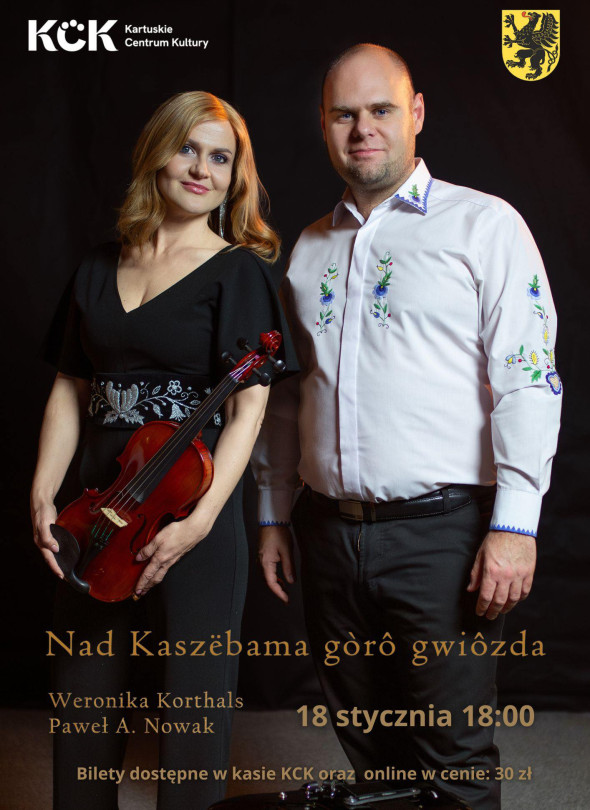 Nad Kaszubami gore gwiazda - niezwykły koncert kolęd i pastorałek w wykonaniu duetu Weroniki Korthals i Pawła A. Nowaka, odbędzie się 18 stycznia o godz. 18:00 w Kartuskim Centrum Kultury.