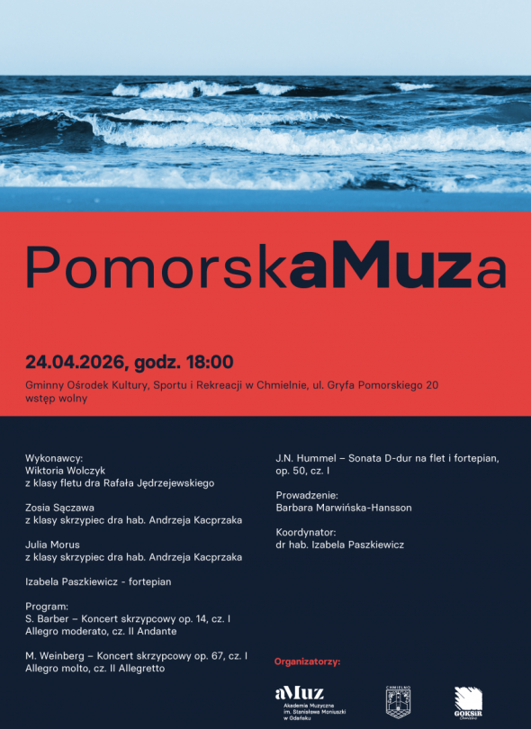 Już 24 kwietnia o godz. 18:00 w Domu Kultury w Chmielnie odbędzie się wyjątkowy wieczór pełen muzyki klasycznej w nadmorskim klimacie.