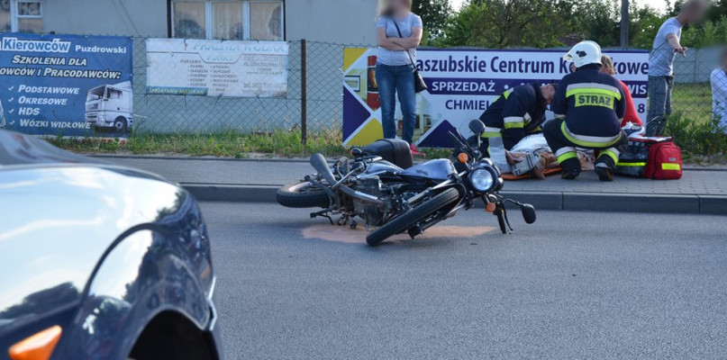 W Starej Maszynie (gm. Sierakowice), na wysokości wyjazdu z parkingu przy markecie, doszło do zderzenia forda z motocyklem. Ranny został kierowca jednośladu. Policja wyjaśnia okoliczności zdarzenia.