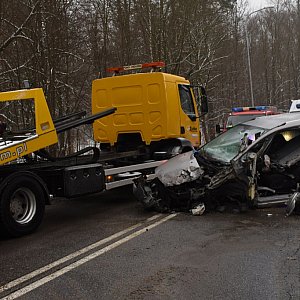 Kierowca forda galaxy trafił do szpitala. Z powodu wypadku droga była nieprzejezdna, policja wyznaczyła objazdy do czasu usunięcia uszkodzonych pojazdów.