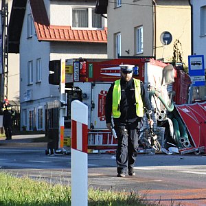 - Kierowca wozu strażackiego chcąc ominąć wysepkę najprawdopodobniej najechał na tył naczepy tira - mówi Karolina Jędrzejczak. - W efekcie wóz strażacki przewrócił się i na skutego tego zdarzenia śmierć na miejscu poniosły dwie osoby - poinformowała Karolina Jędrzejczak.