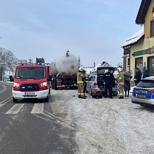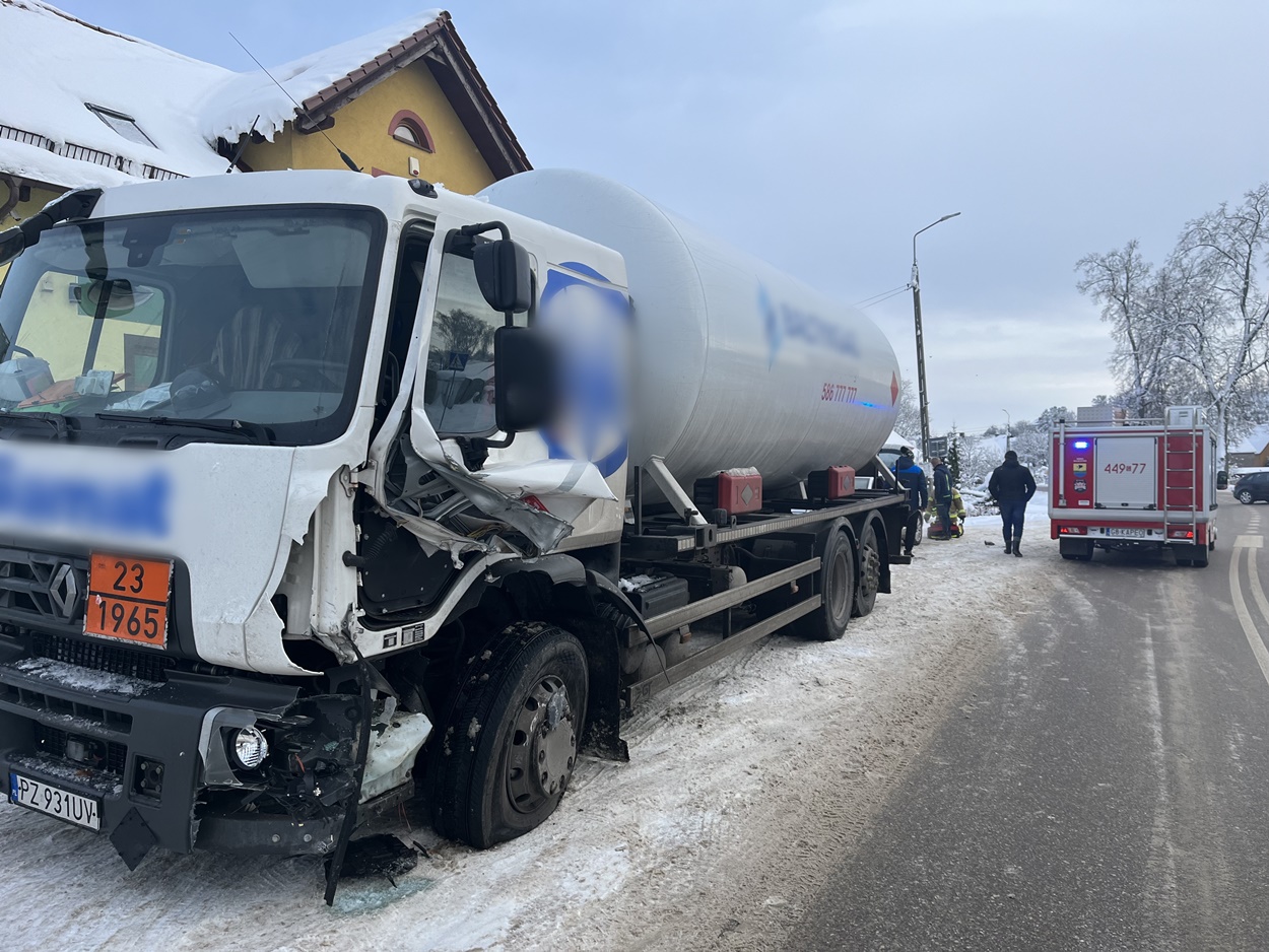 Przed południem w Węsiorach (gm. Sulęczyno) doszło do zderzenia dwóch pojazdów: osobówki i ciężarówki przewożącej gaz.