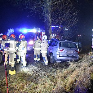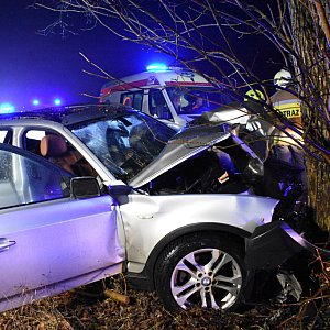 W Węsiorach, na drodze wojewódzkiej nr 228 BMW zjechało z trasy i uderzyło w drzewo. Trzy osoby trafiły do szpitala.