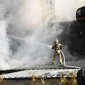 Obecnie zdarzenie zostało opanowane, trwa dogaszanie oraz prace rozbiórkowe.
