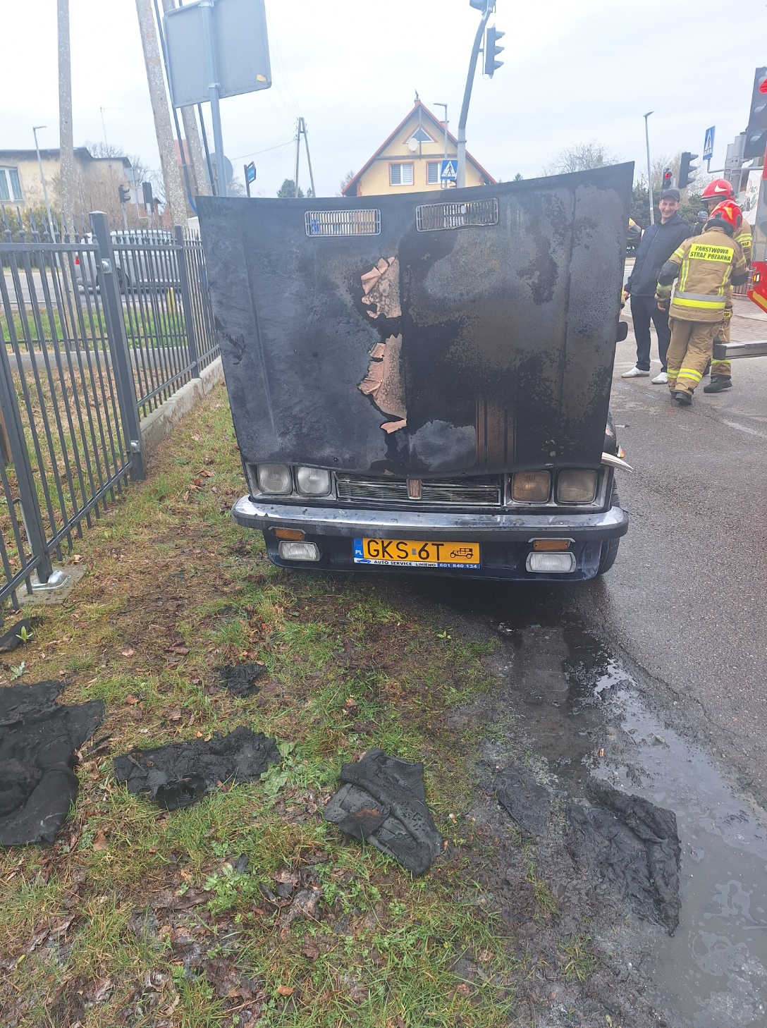 Do zdarzenia doszło w niedzielę 19 kwietnia przed godz. 14.00. Po przybyciu na miejsce strażacy zastali pożar pojazdu. Jak się okazało, był to zabytkowy fiat 125. Ogień szybko objął samochód,