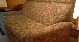 Nostalgiczna piekna kanapa/fotel na sprezynach z orginalnym materialem w kolore ... czytaj więcej
