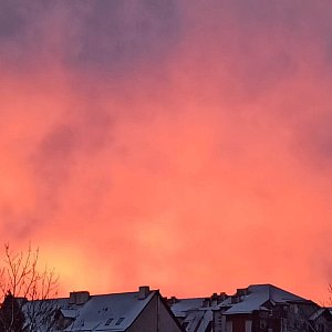 Niestety takie czerwone niebo niedobrze wróży, co już potwierdza inny - obecny widok za oknem.