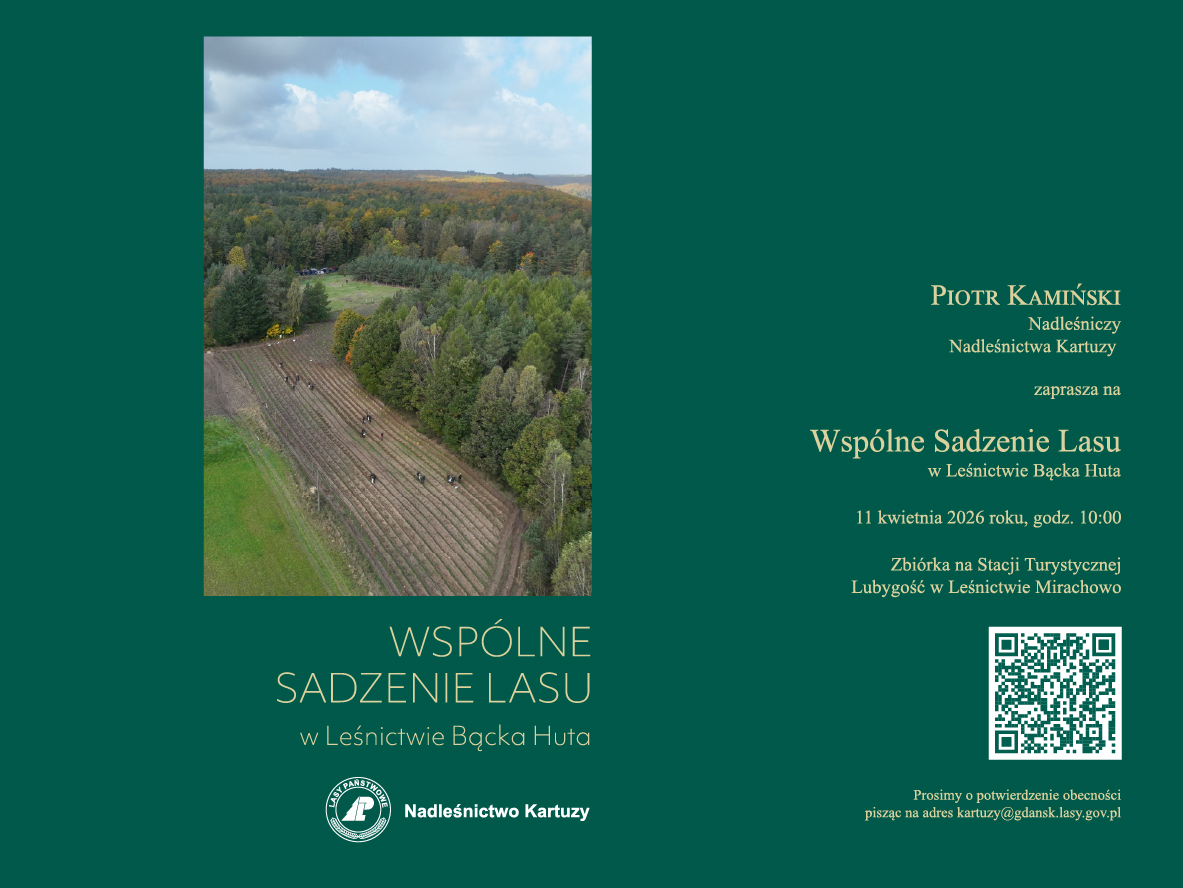 W sobotę 11 kwietnia Nadleśnictwo Kartuzy zaprasza mieszkańców oraz wszystkich zainteresowanych do wspólnego sadzenia lasu. Miejscem zbiórki będzie Stacja Turystyczna w Mirachowie, skąd uczestnicy pojadą autokarami na miejsce sadzenia w leśnictwie Bącka Huta.
