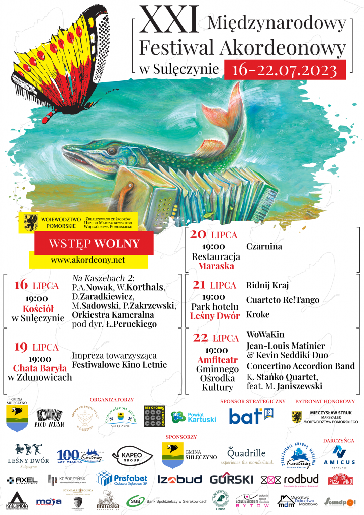 Kolejne koncerty odbędą się w restauracji Maraska w Sulęczynie, w parku hotelu Leśny Dwór oraz w amfiteatrze przy GOK-u. Wystąpią grupy: Czarnina, Ridnij Kraj (Ukraina), Kroke, Cuarteto Re!Tango, WoWaKin, Jean-Louis Matinier & Kevin Seddiki Duo (Francja), Concertino Accordion Band (Mołdawia), Krystyna Stańko Quartet, feat. Marcin Janiszewski.