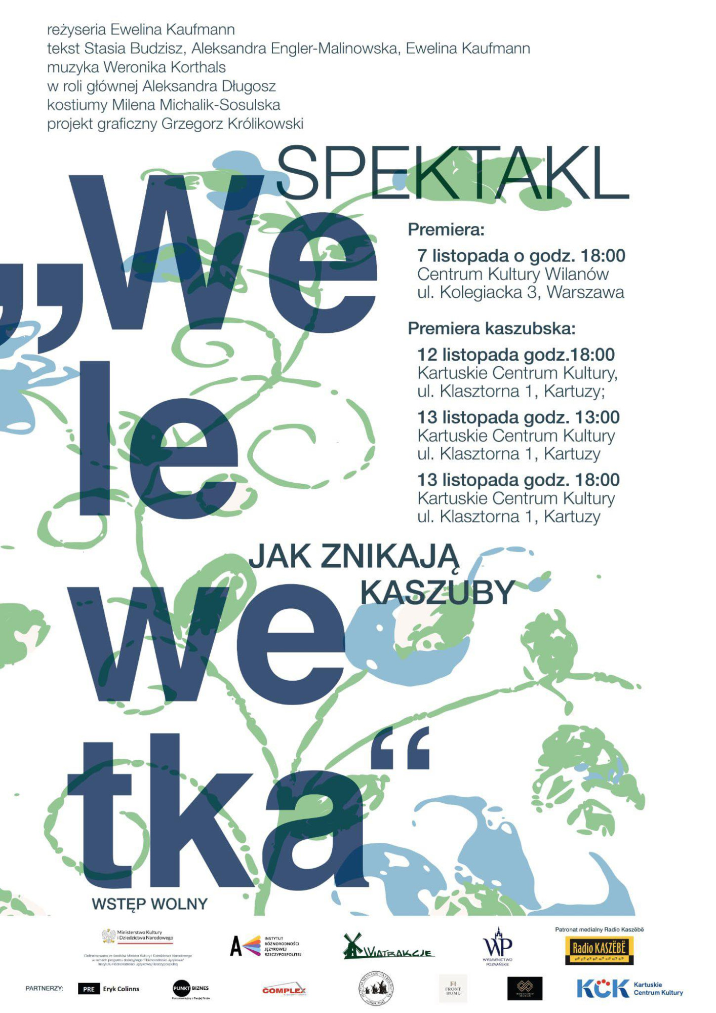 "Welewetka. Jak znikają Kaszuby” to monodram zbudowany z prawdziwych historii, rodzinnych wspomnień i pytań, które od lat wiszą w powietrzu. W roli głównej zobaczymy Aleksandrę Długosz, która zabierze widzów w intymną podróż przez pamięć, wstyd, język i tożsamość.