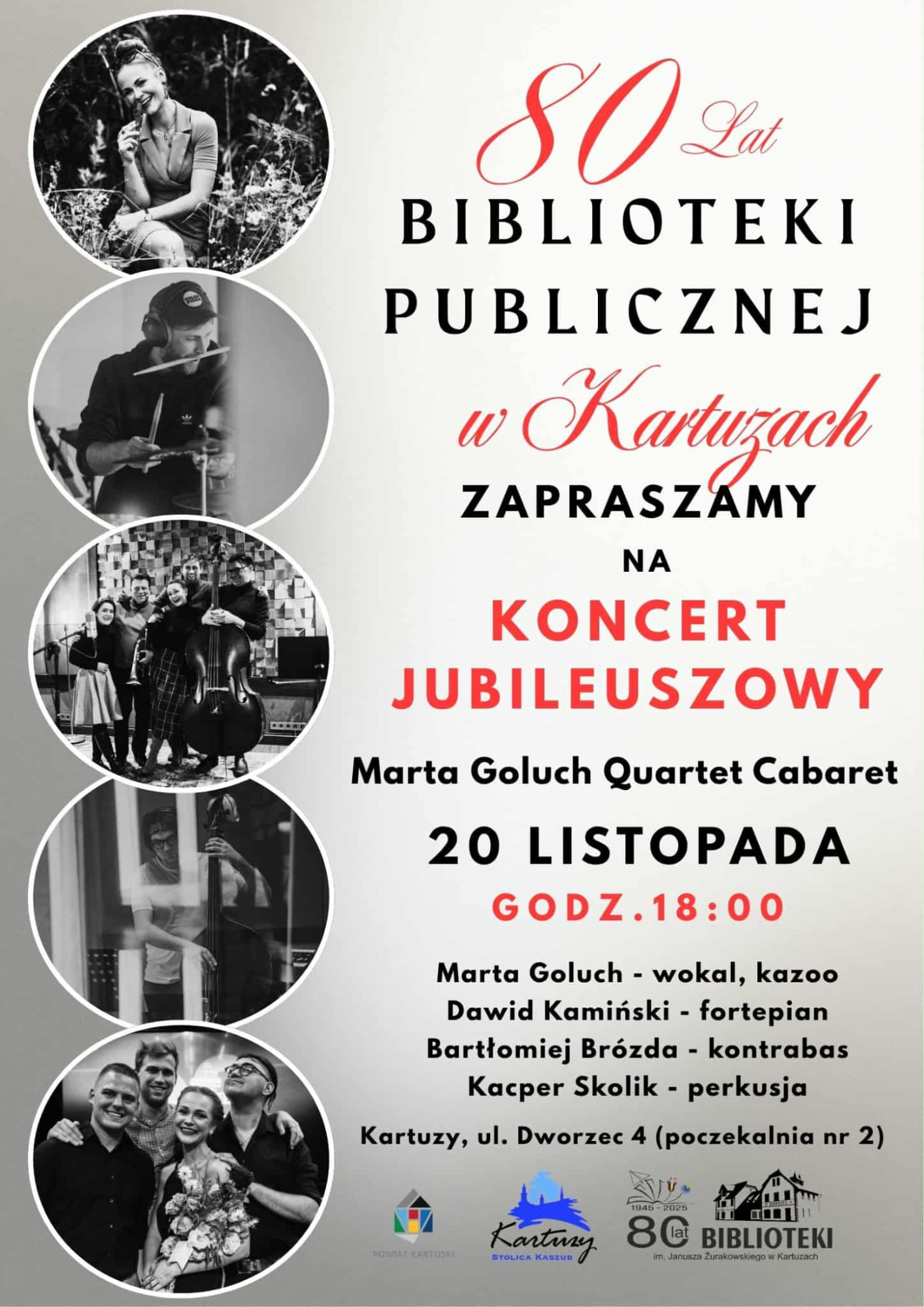 W czwartek 20 listopada Miejska i Powiatowa Biblioteka Publiczna w Kartuzach świętować będzie 80-lecie istnienia. Z tej okazji o godz. 18.00 w budynku kartuskiej biblioteki i dworca odbędzie się koncert. Wystąpi Marta Goluch Quartet Cabaret.