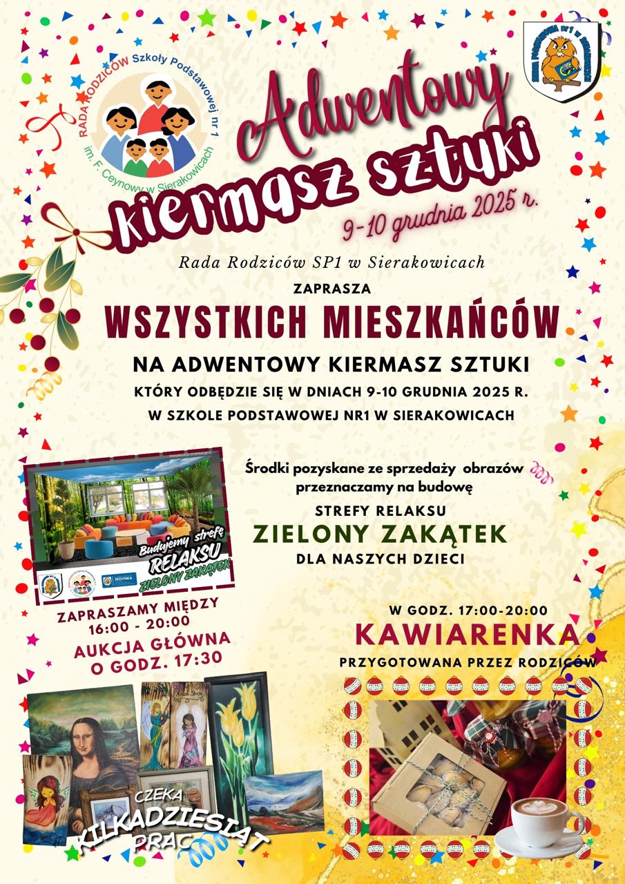 Rada Rodziców SP nr 1 w Sierakowicach zaprasza wszystkich mieszkańców do udziału w wyjątkowej akcji poprzedzającej Adwentowy Kiermasz Sztuki. Trwa zbiórka obrazów - tych nowych, ale także tych zapomnianych, przechowywanych od lat na strychach, w piwnicach czy w zakamarkach domowych regałów.