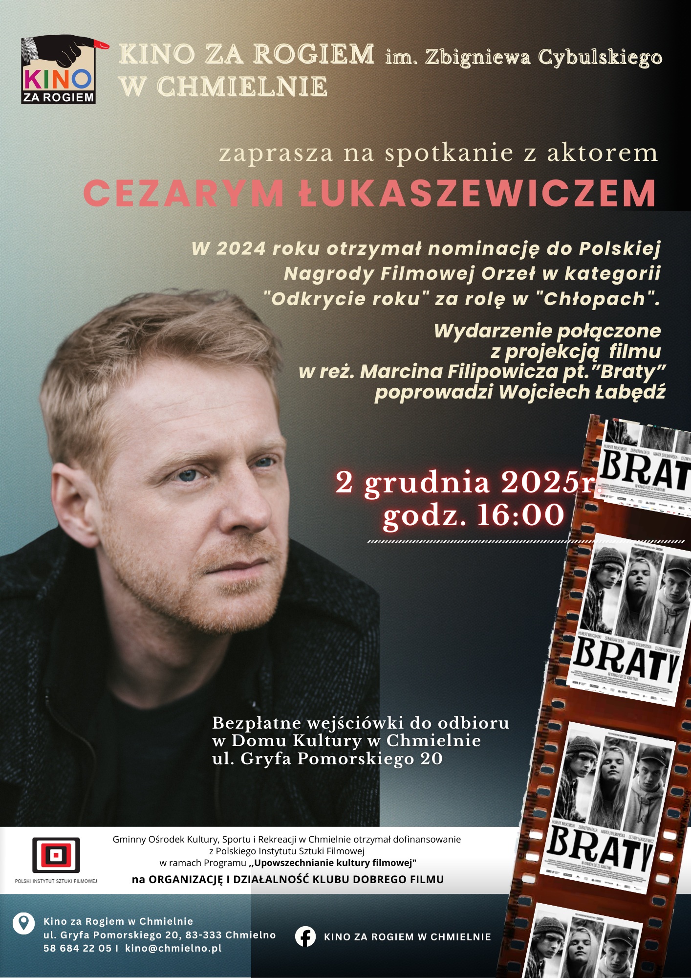 Wydarzeniu towarzyszyć będzie projekcja poruszającego filmu "Braty” w reżyserii Marcina Filipowicza, w którym Łukaszewicz współtworzył obsadę.