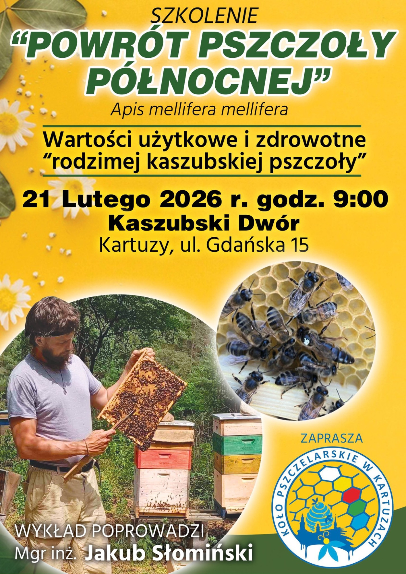 Wykład poprowadzi mgr inż. Jakub Słomiński - specjalista w dziedzinie pszczelarstwa.