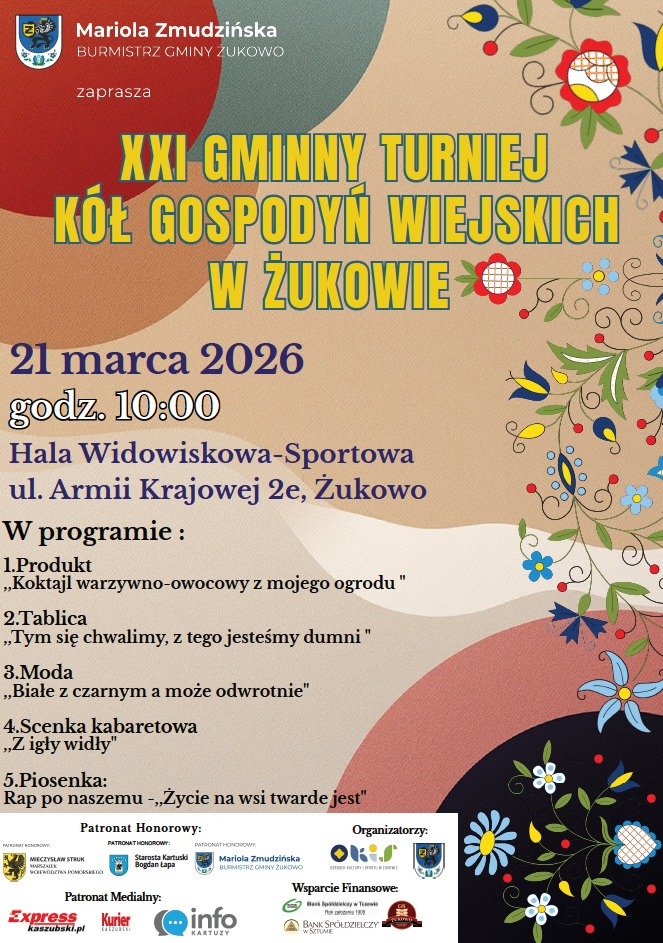W sobotę 21 marca w hali widowiskowo-sportowej w Żukowie po raz 21. odbędzie się Gminny Turniej Kół Gospodyń Wiejskich. Panie będą rywalizować w pięciu konkurencjach.