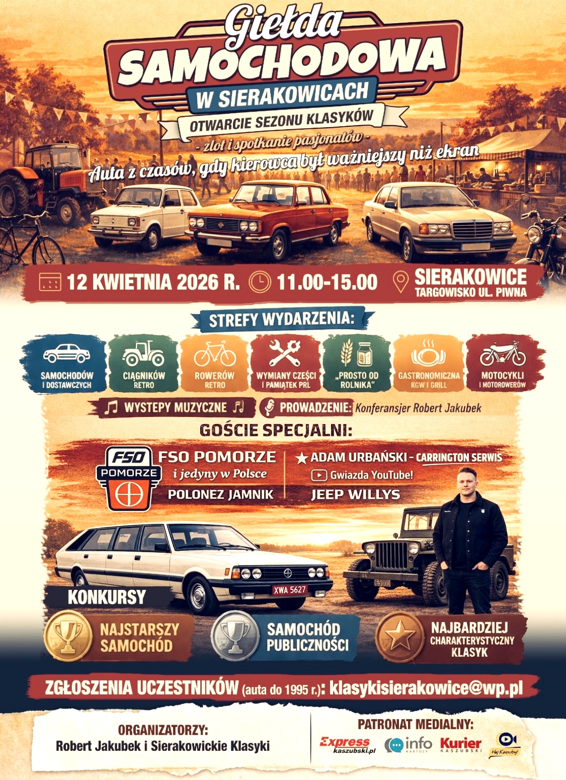 To będzie wyjątkowe wydarzenie i prawdziwa gratka dla fanów motoryzacji. Zwłaszcza tej w klasycznym wydaniu. Już w kwietniu w Sierakowicach Giełda Samochodowa. Trwają zapisy uczestników - chodzi o samochody z roczników sprzed 1995.