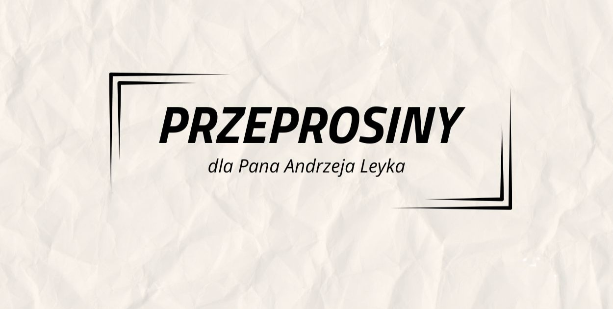 Ja niżej podpisany Dawid Janczak przepraszam Andrzeja Leyka za to, że w dniu 1 lipca 2025 r. na portalu Expres Kaszubski.pl w artykule pod tytułem: "Wprowadzają mieszkańców w błąd. Po co ten zamęt i dezinformacja?", w sekcji komentarzy pomówiłem go o zakup wykształcenia w Collegium Humanum podpisując się nickiem "Prokowianin", co naruszyło jego dobre imię oraz sławę, a co jest nieprawdą i stanowiło wyraz bezsensownego wybryku.