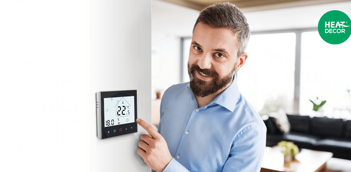 Typ systemu grzewczego definiuje rodzaj termostatu, który należy zamontować w domu lub mieszkaniu. System podłogowy oparty na foliach grzewczych pozwala na wybór termostatu zgodnie z indywidualnymi preferencjami. Należy zwrócić uwagę na liczbę czujników temperatury, w które jest wyposażony. Standardem na rynku są urządzenia z dwoma czujnikami i są one konieczne, aby termostat spełniał swoje zadanie w należyty sposób. Jeden czujnik mierzy temperaturę podłogi, a drugi powietrza. Dobrym przykładem jest model HD-T1000, który wyposażony jest w dwa czujniki, ale czujnik temperatury powietrza można zamontować na zewnątrz urządzenia. Umożliwia to instalację samego termostatu w dowolnym miejscu, a niekoniecznie w pomieszczeniu, które obsługuje. Dzięki temu rozwiązaniu, wszystkie termostaty obsługujące system podłogowego ogrzewania elektrycznego, można umieścić w jednym miejscu, które będzie pełnić rolę centrali dla całego budynku. Zaawansowane termostaty są wyposażone w dotykowe ekrany oraz mogą być obsługiwane przez aplikacje, tj. Smart Life. Dzięki niej możliwe jest sterowanie ogrzewaniem z poziomu smartfona. Podsumowując, dwa osobne czujniki dają możliwość: