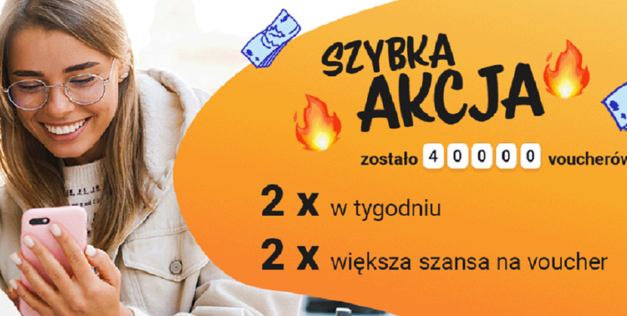 Karta z „Szybką akcją” pojawia się w ciągu dnia w każdy poniedziałek i czwartek na głównej stronie aplikacji. Znajduje się na niej przycisk „Chcę to!” – należy go wybrać, a następnie jednorazowo zaakceptować regulamin akcji i ponownie potwierdzić chęć zdobycia vouchera.