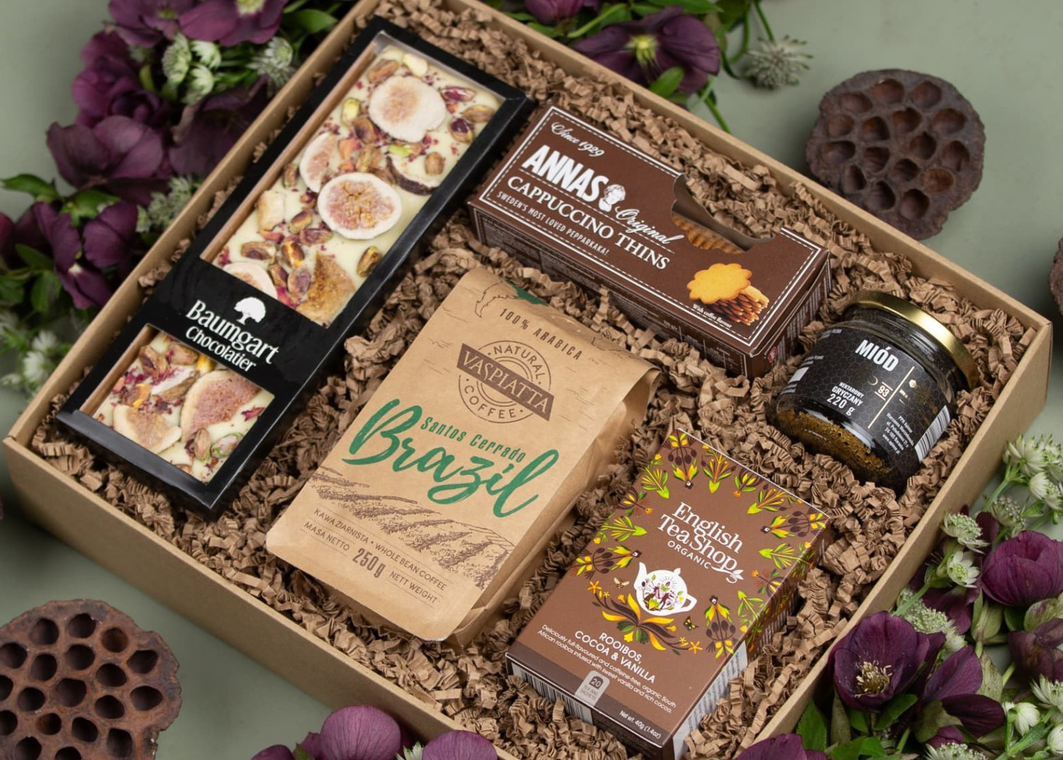 Komponowanie zawartości kosza powinno być przemyślane i dostosowane do gustu nowożeńców. Klasycznym wyborem jest wysokiej jakości wino musujące lub szampan, idealny do wzniesienia toastu za szczęśliwą przyszłość. Do tego warto dodać wykwintne czekoladki, praliny lub inne słodkie przysmaki. Dla par ceniących kulinarne doznania sprawdzą się delikatesy - aromatyczne herbaty, kawa speciality czy ekskluzywne konfitury.