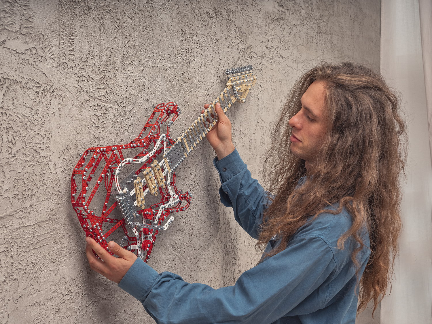 W premierowej kolekcji pojawia się linia gitar. Pełnowymiarowe modele składane z metalowych płytek i śrubek już na pierwszy rzut oka robią ogromne wrażenie. Wyjątkowa ozdoba, która jest manifestacją muzycznej pasji. Wieszane na ścianie wyglądają jak trofea ludzi, którzy kochają dźwięk, scenę i energię rocka. Każda gitara to kilkanaście godzin twórczej frajdy, a efekt końcowy jest po prostu spektakularny.