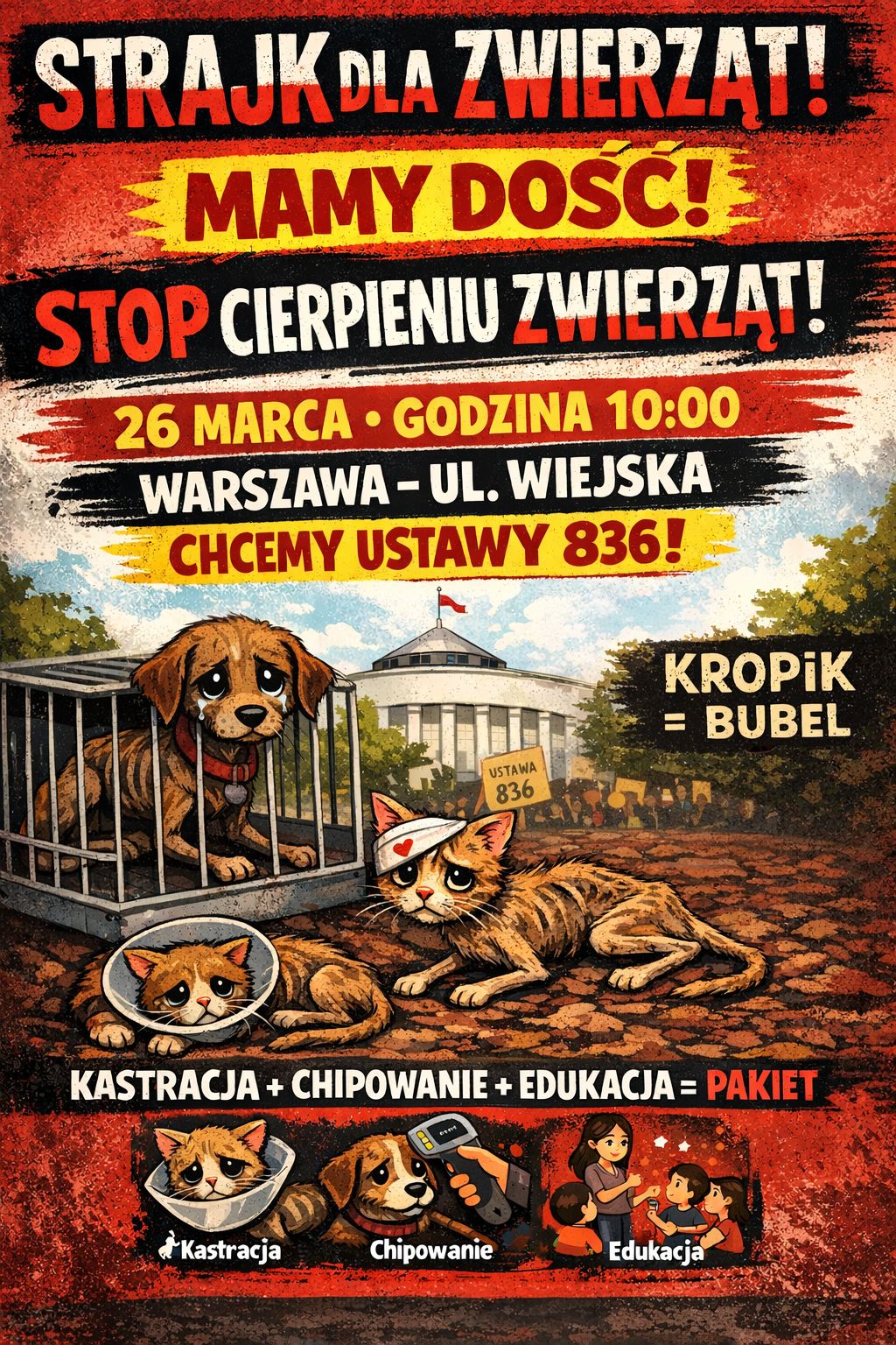 W czwartek 26 marca przed Sejmem RP w Warszawie odbędzie się ogólnopolski protest w obronie praw zwierząt. Wydarzenie odbędzie się pod hasłem "Mamy dość! Stop cierpieniu zwierząt w Polsce" . Organizatorzy zapowiadają pokojową manifestację bez przemarszu i apelują o szeroki udział obywateli.