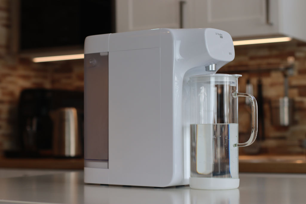 Ten kompaktowy sprzęt zajmuje zaledwie 17 cm szerokości blatu, więc bez trudu zmieści się w każdej, nawet najmniejszej kuchni. Dzięki braku wymogu stałego montażu można go swobodnie przenosić, traktując jako dystrybutor wody do biura lub zabrać na wyjazd do domku letniskowego. Intuicyjna obsługa sprawia, że korzystanie z systemu filtracyjnego jest niezwykle proste dla każdego domownika bez względu na wiek. Wystarczy podłączyć sprzęt do prądu, by cieszyć się zdrowiem, gdyż membrana jest całkowicie nieprzepuszczalna dla szkodliwych zanieczyszczeń biologicznych. O zakończeniu całego procesu poinformuje użytkownika czerwona ikona kropli, co stanowi bardzo wygodne i intuicyjne rozwiązanie. Dodatkowym atutem jest fakt, że woda zużyta podczas filtracji może zostać ponownie wykorzystana do celów gospodarczych. To rozwiązanie idealnie wpisuje się w nowoczesne trendy dbania o środowisko naturalne. Do najistotniejszych korzyści wynikających z użytkowania tego urządzenia należą: