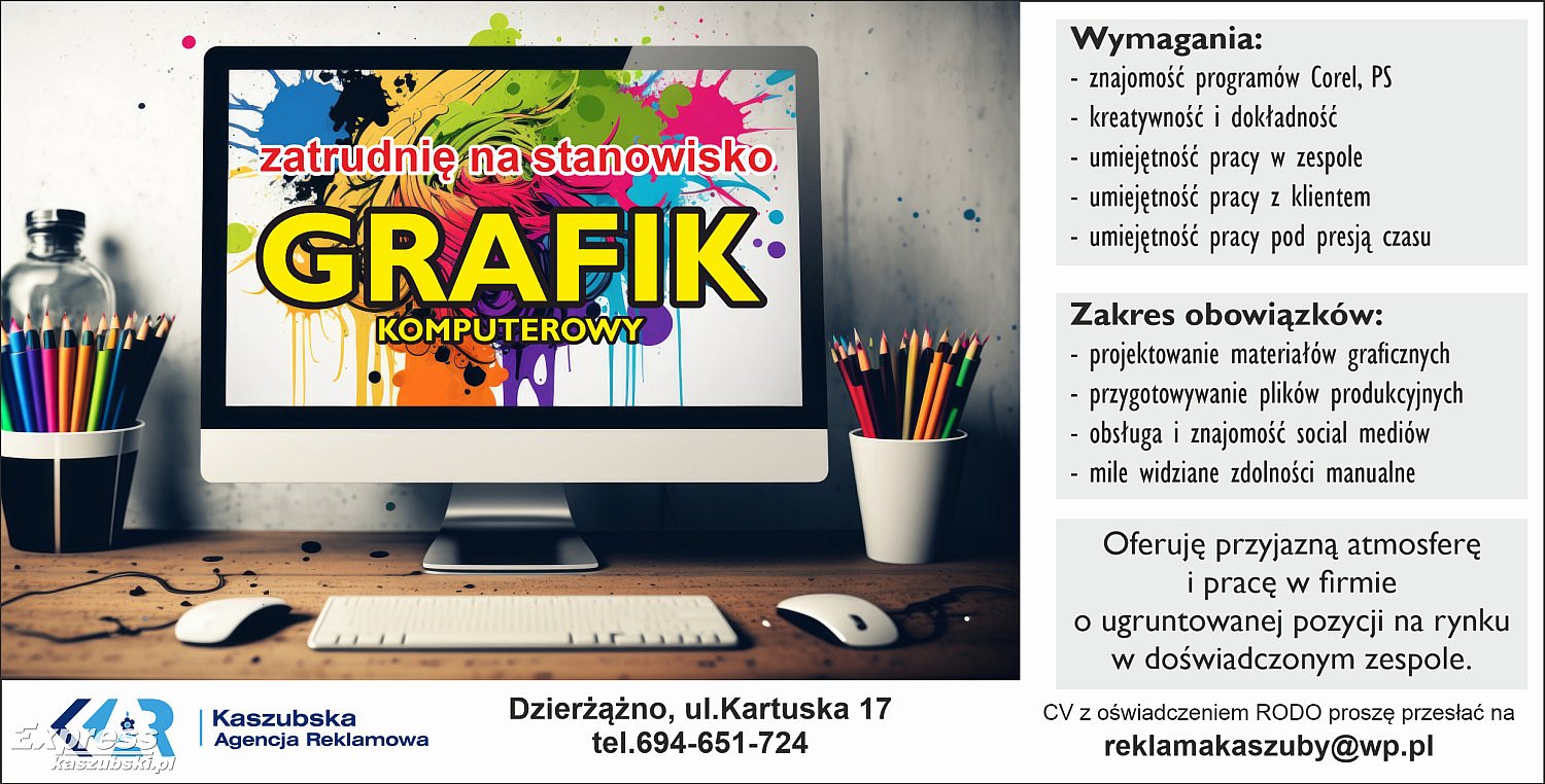 Poszukuję do pracy stacjonarnej na stanowisko grafik komputerowy.