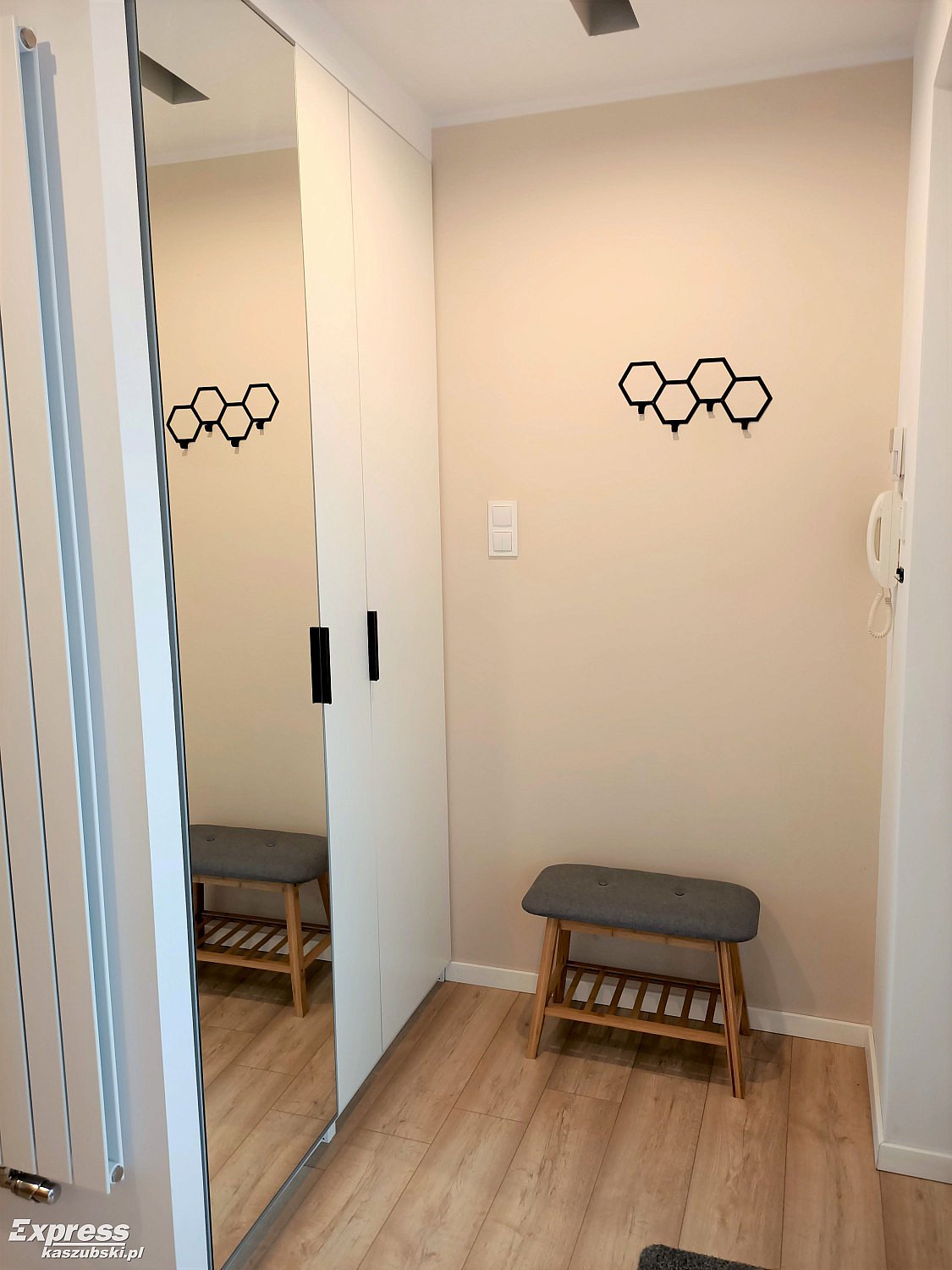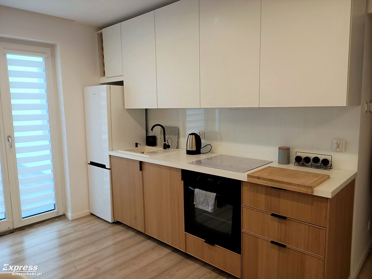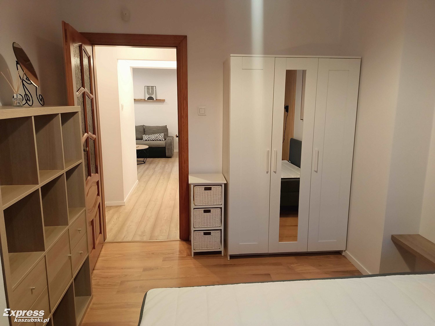 Wynajmę mieszkanie w centrum Żukowa o powierzchni 41 m2. Mieszkanie składa się z salonu z aneksem kuchennym, sypialni i łazienki. W salonie znajduje się narożnik z funkcją spania, stolik kawowy i rozkładany stół z dwoma krzesłami. Kuchnia wyposażona w lodówkę, piekarnik elektryczny, płytę indukcyjną oraz pralkę. W sypialni znajdują się podwójne łóżko i dwie szafy. Mieszkanie znajduje się blisko przystanku autobusowego.