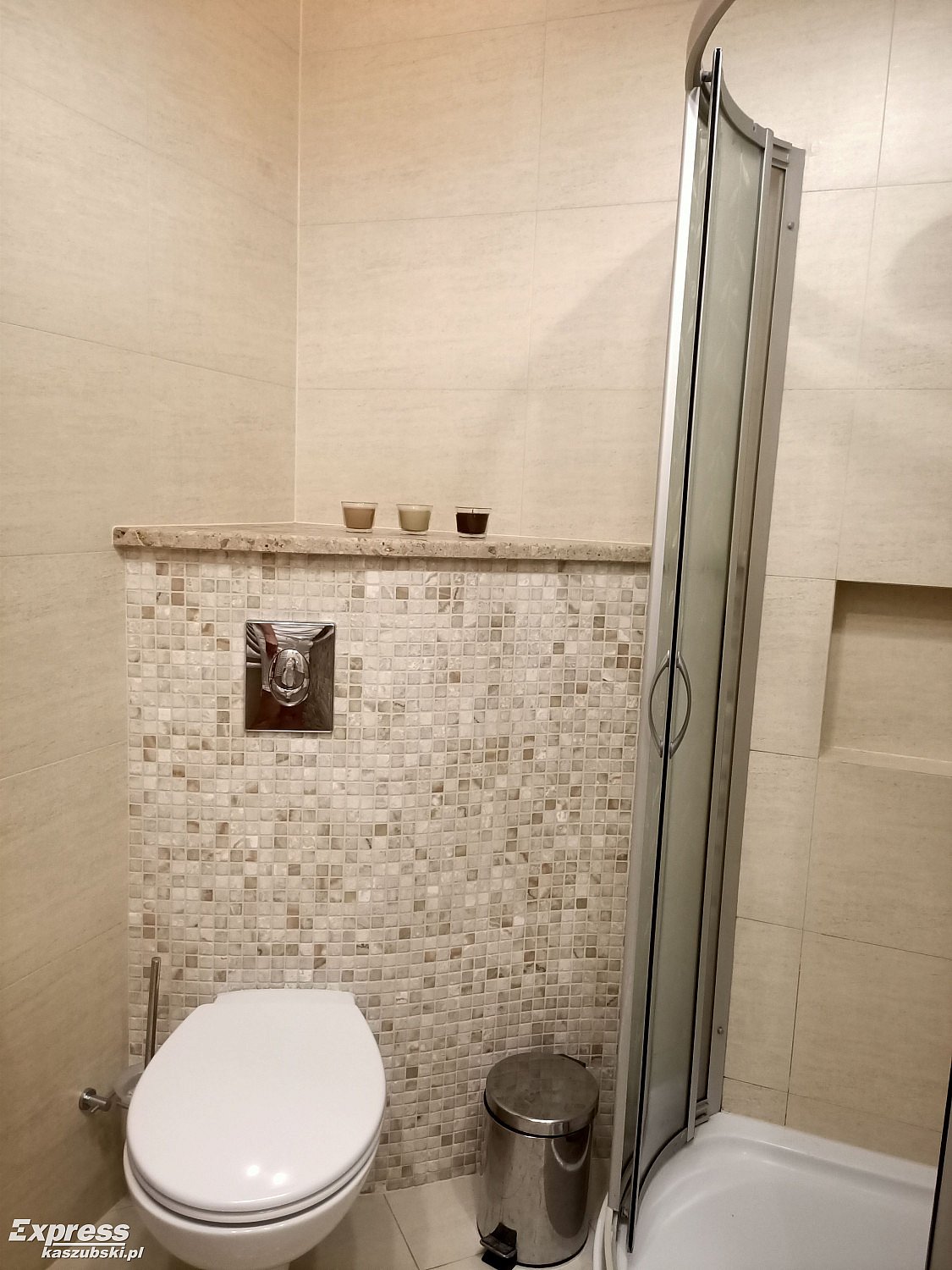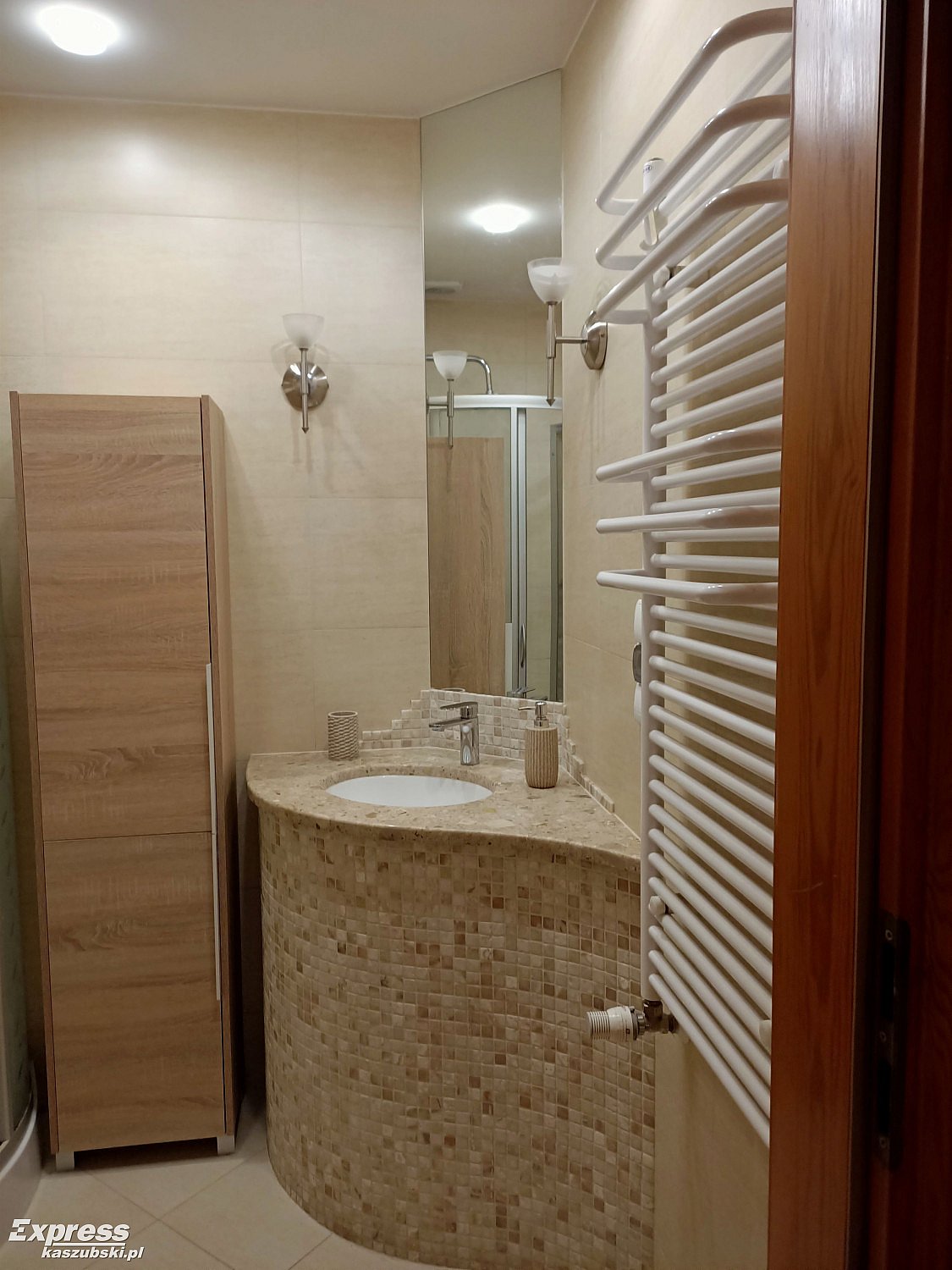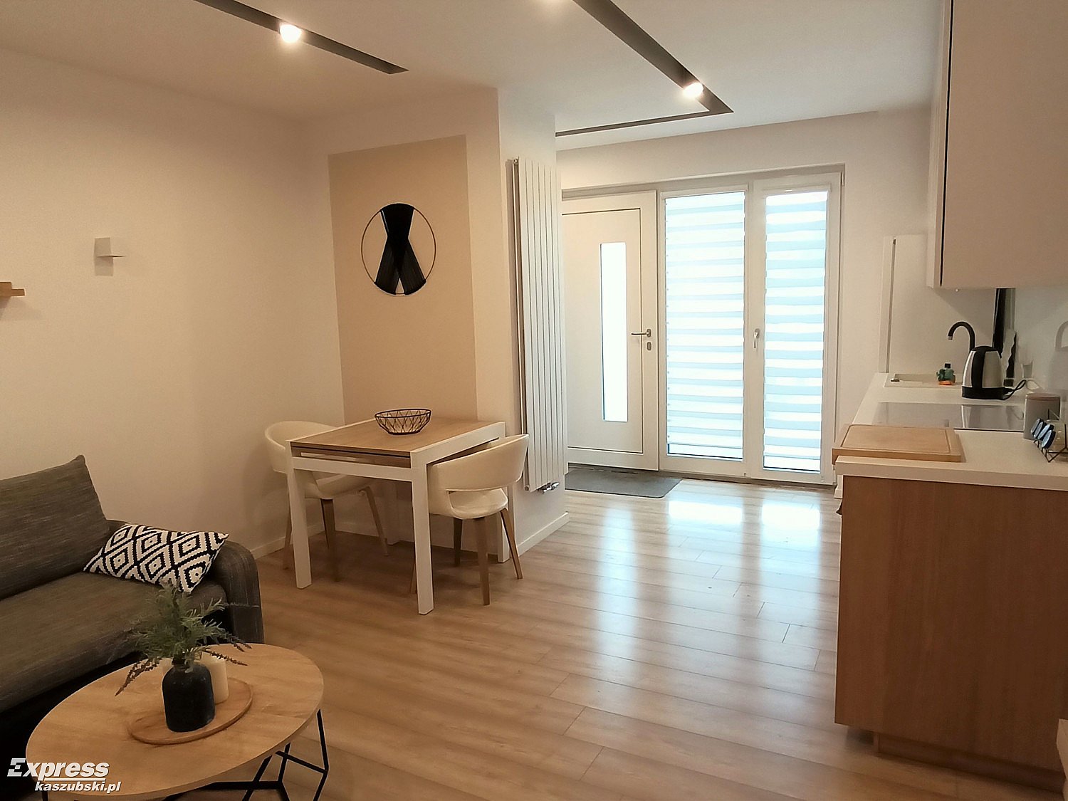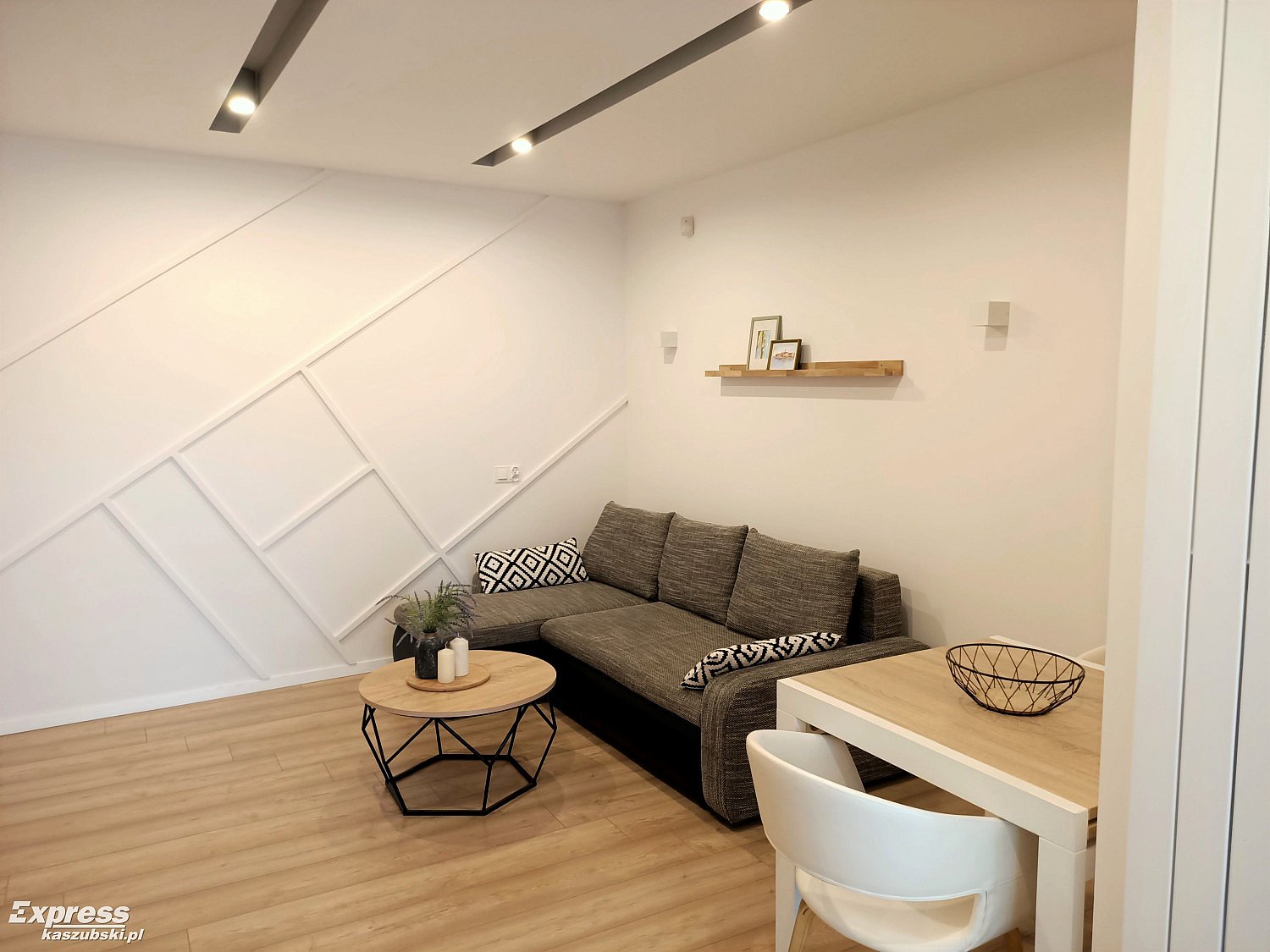 Wynajmę mieszkanie w centrum Żukowa o powierzchni 41 m2. Mieszkanie składa się z salonu z aneksem kuchennym, sypialni i łazienki. W salonie znajduje się narożnik z funkcją spania, stolik kawowy i rozkładany stół z dwoma krzesłami. Kuchnia wyposażona w lodówkę, piekarnik elektryczny, płytę indukcyjną oraz pralkę. W sypialni znajdują się podwójne łóżko i dwie szafy. Mieszkanie znajduje się blisko przystanku autobusowego.