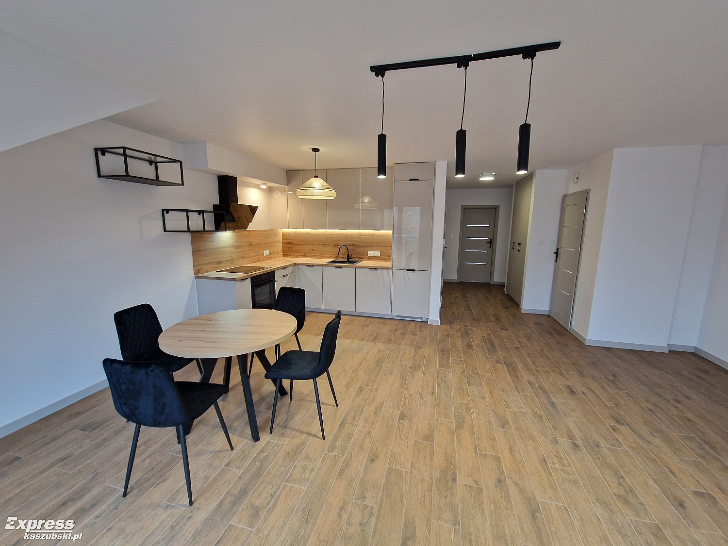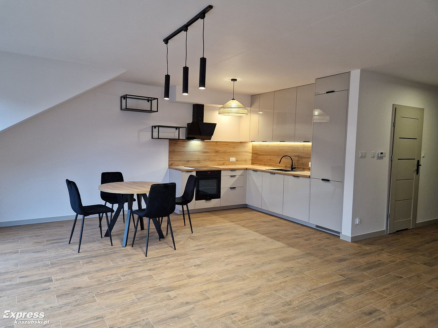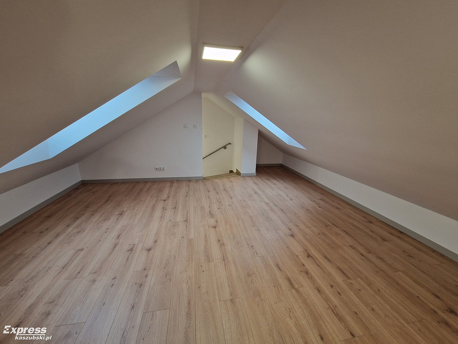 Do wynajęcia nowe mieszkanie częściowo umeblowane na piętrze. 74 m2 powierzchni + 28 m2 użytkowy ogrzewany strych w nowym budynku jednorodzinnym. Budynek typu bliźniak każdy lokal ma niezależne wejście - brak części wspólnych.