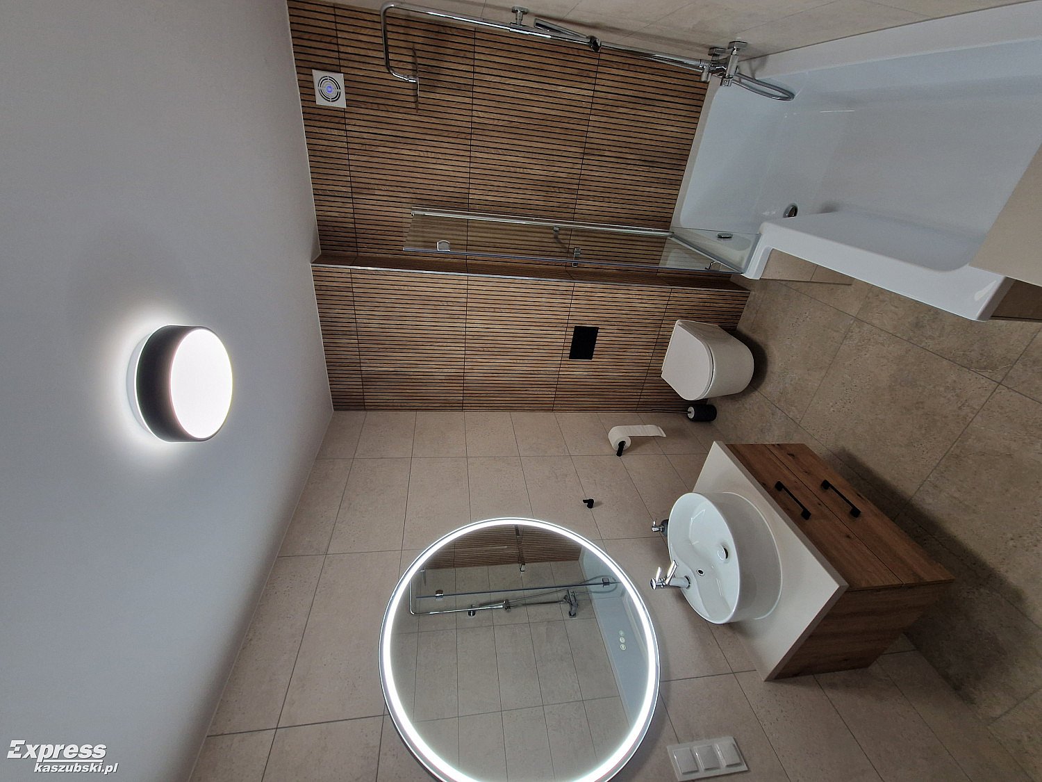 - łazienka 6,0 m2 w pełni wyposażona nowa pralko-suszarka CANDY, wanna z funkcją prysznica