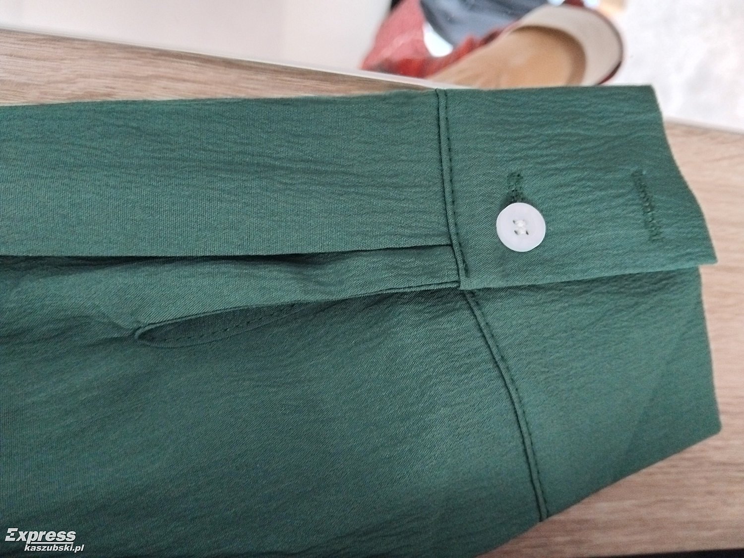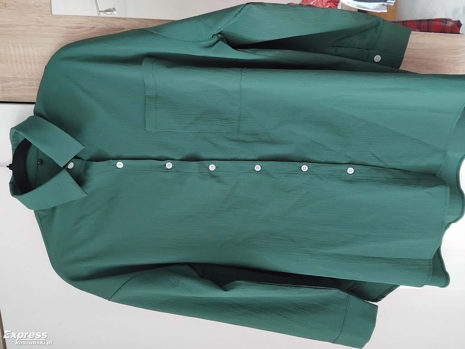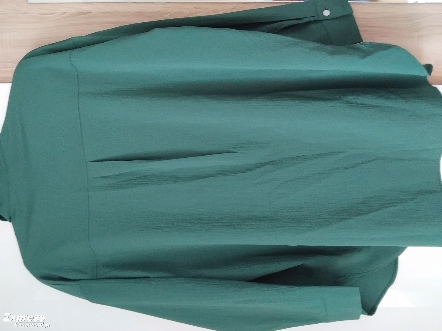 Na sprzedaz nowa zwiewna koszula damska w przepieknym zywym kolorze ciemnej zieleni. Odsprzedaje taniej,rozmiarowka bardzo zanizona wg,metki s a pasuje na m/l. Polecam bo wyglada elegancko i twarzowo.