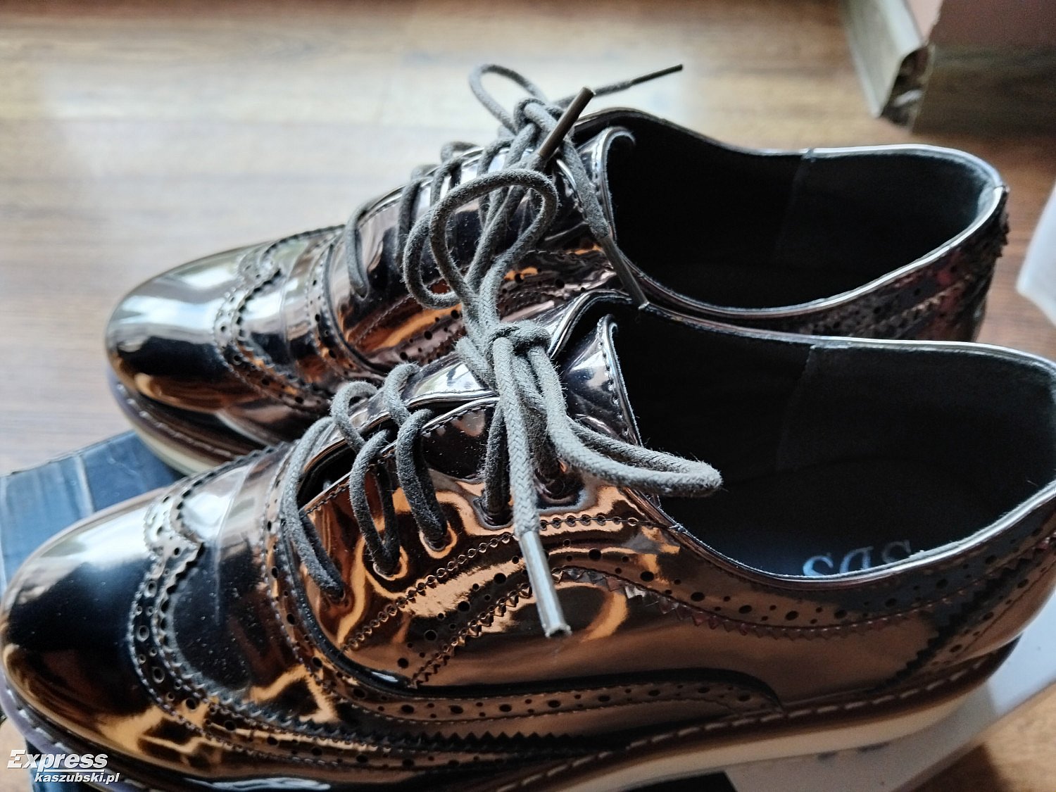 Na sprzedaz piekne wygodne jak nowe damskie oksfordy,rozmiar 40. Ubrane jeden raz wiec stan bardzo dobry. Nadaja elegancji kazdej stylizacji. Kolor pasujacy do wszystkiego. Polecam.