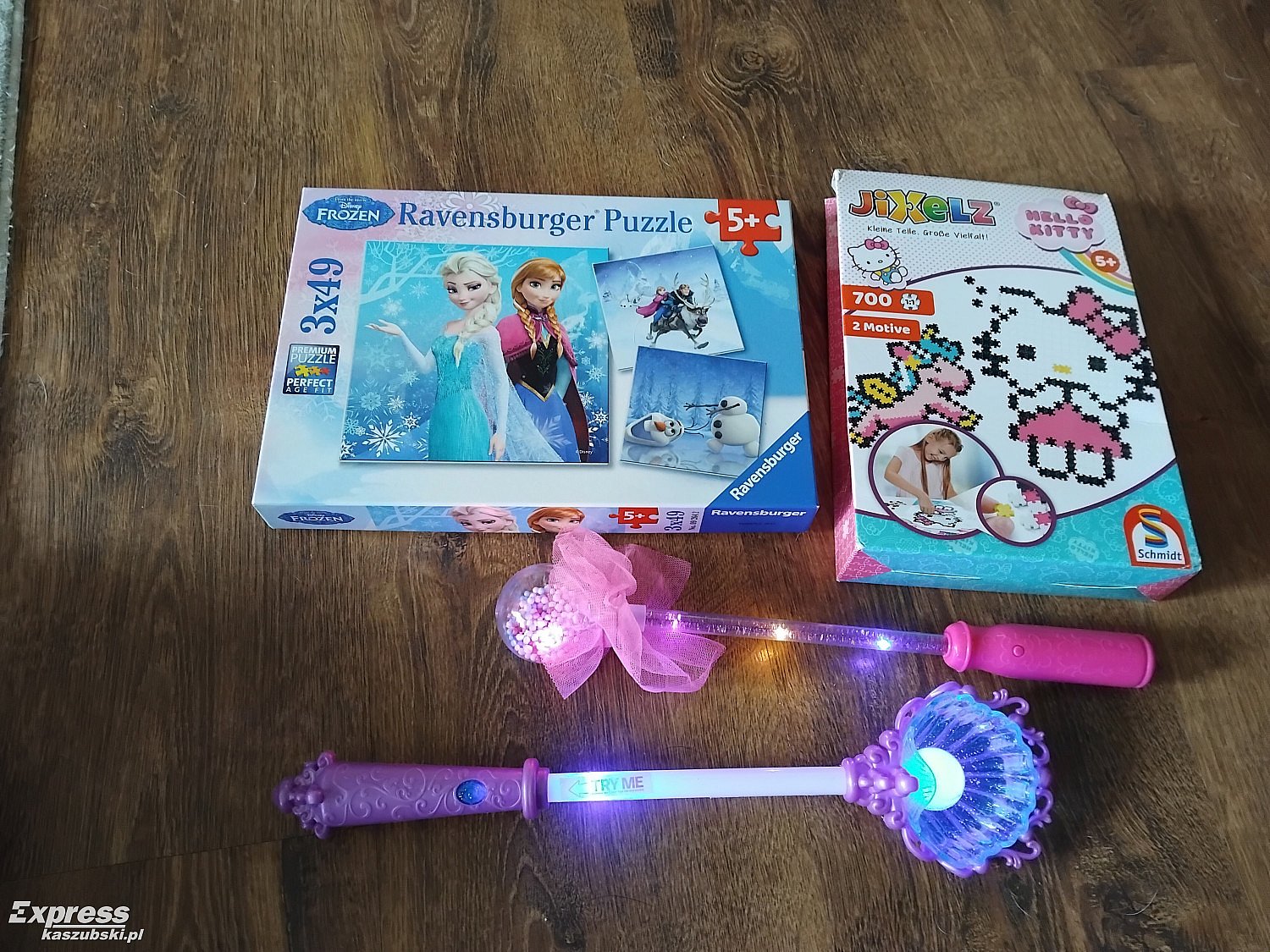 Na sprzedaz duzy zestaw zabawek,gier,ukladanek,swiecace różdżki,gra Psi Patrol,mini Polly Pocket,nowe karty do gry,puzzle,maskotki,pojazd z figurka Psi Patrol,opaska na oczy do spania. Wszystko sprawne,czyste i zadbane.