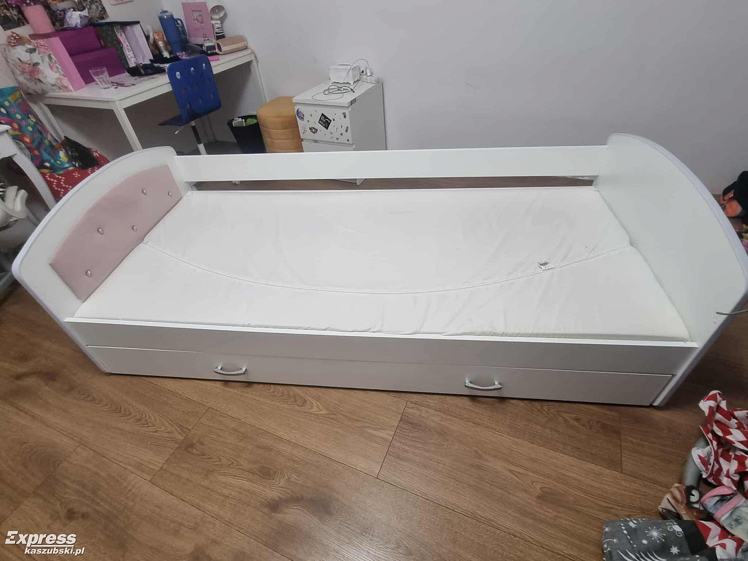 Łóżko zadbane i czyste . Materac czysty pokrowiec czysty. Normalnie ślady użytkowania minimalnie widoczne. W przyszłości ewentualnie deska pod materacem do podkręcenia. 95 gł 205 szer 66wys. Córka kupiła sobie nowe. Odbiór osobisty.