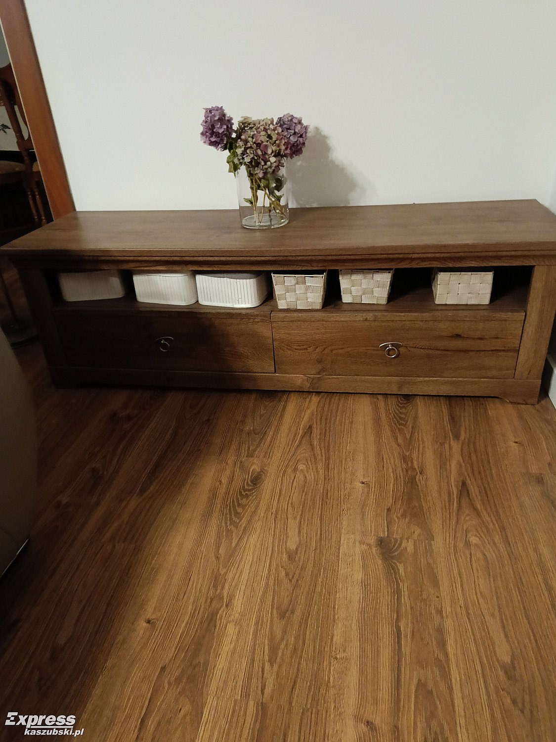 Sprzedam szafkę RTV Patras w bardzo dobrym stanie kolor dąb april. Wymiary szafki to długość 154 cm, szerokość 44,5 cm, wysokość 48 cm.