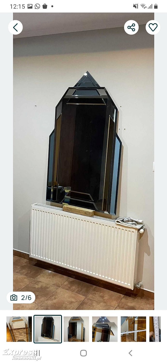 Sprzedam przepiekne duze lustro robione na zamowienie,w stylu glamour,wstawki koloru niebieskiego oraz brazowego ala zadymione szklo. Wymiary na zdjeciach.