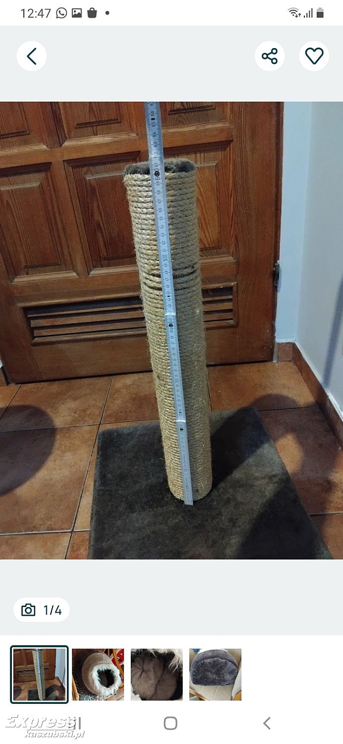 Na sprzedaz duze masywne,zadbane dobrej marki dwa drapaki dla kota tzw,slupki,zapobiegaja drapaniem mebli przez koty ,posiadam 2 sztuki,kazdy w cenie 40 zl oraz budka legowisko firmy Trixie model Minou,cieple miekkie w srodku futerkowa poduszka,moze byc takze dla malego pieska,cena 40 zl. Wszystko czyste i zadbane.