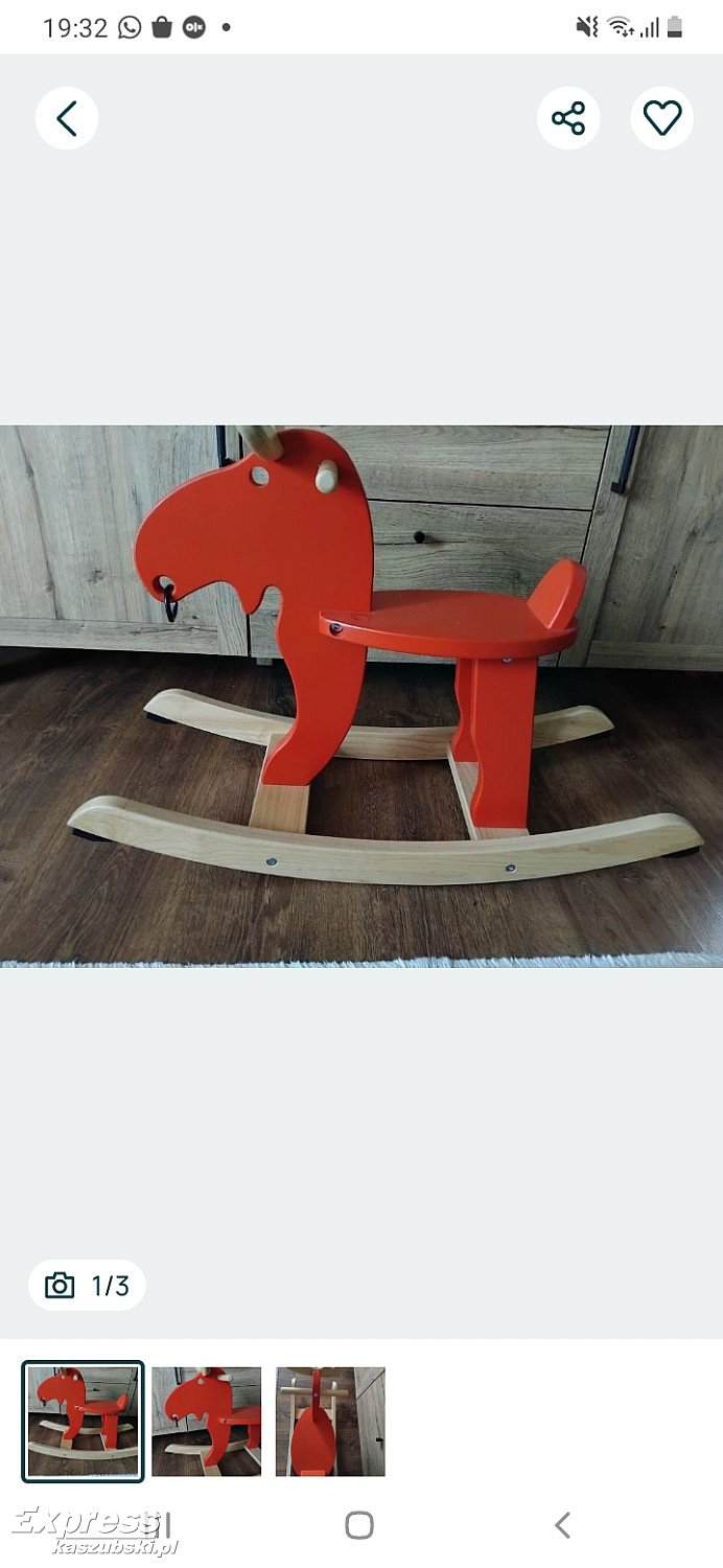 Sprzedam niedrogo nowego łosia na biegunach,pieknie solidnie wykonany,zakupiony w Ikea za 170 zl. Fajna zabawa a zarazem ozdoba pokoju dziecka.